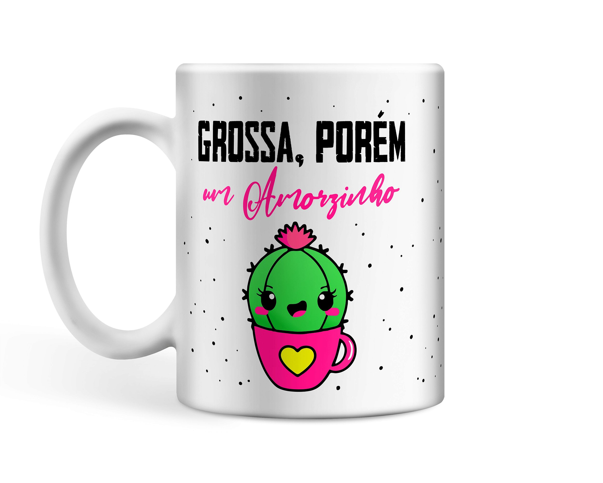 Caneca personalizada de porcelana de alto brilho, interior e alça branca com estampa Grossa, Porém um Amorzinho.