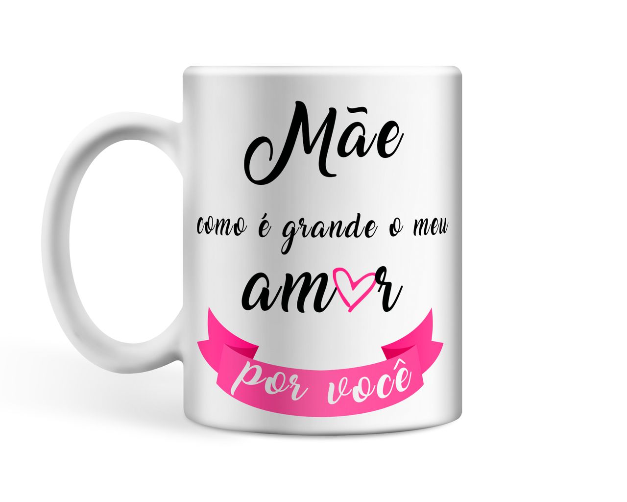 Caneca personalizada de porcelana de alto brilho, interior e alça branca com estampa para Mãe como é Grande meu Amor por Você.